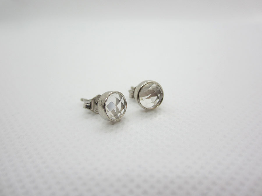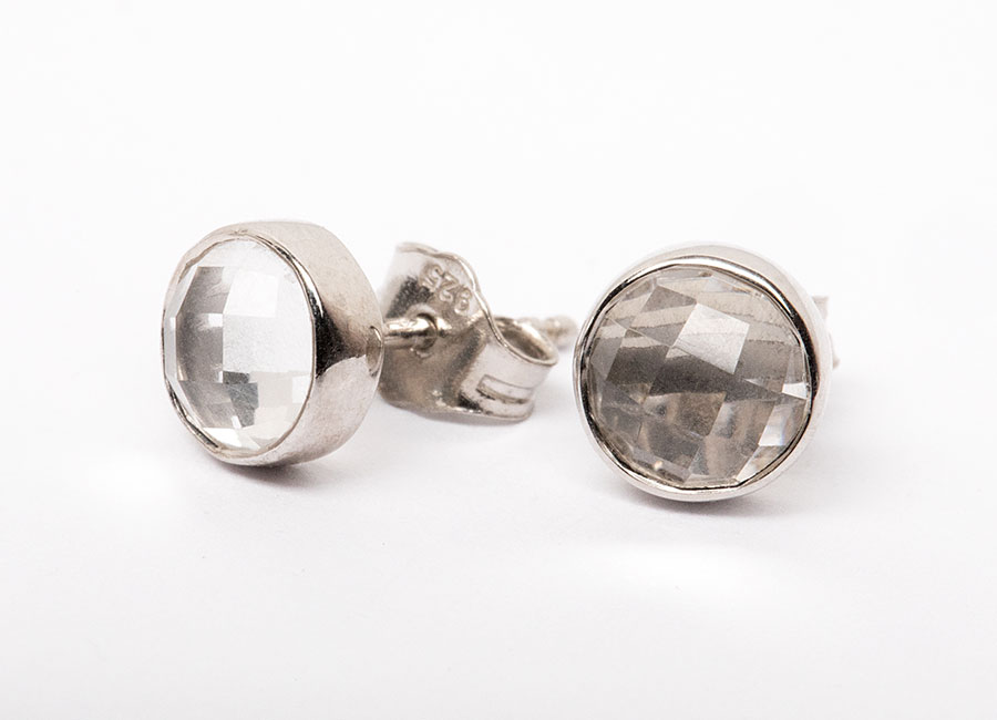 Runder Ohrstecker aus 925 Silber mit Edelstein Bergkristall.